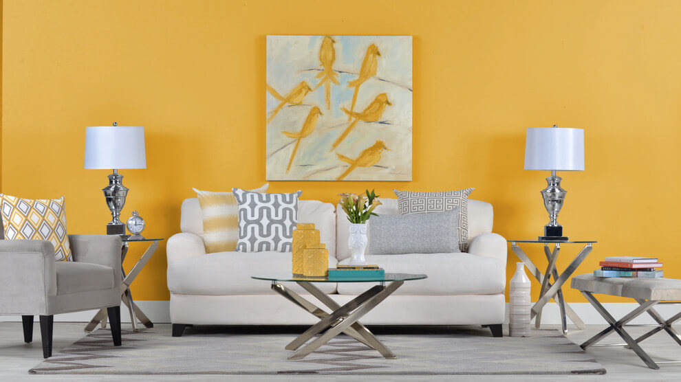 É uma cor legal para ser usada em escritórios, em salas de estudo ou em salas de jantar ou estar, justamente por inspirar energia e otimismo, assim como iluminar o ambiente.