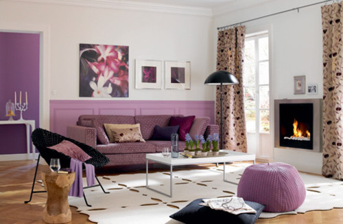 Na decoração de um ambiente, o violeta, e seus diversos tons, pode estar em uma parede, em uma porta de circulação ou de um armário, assim como no mobiliário ou em acessórios, a exemplo de tapete, almofada ou vaso.