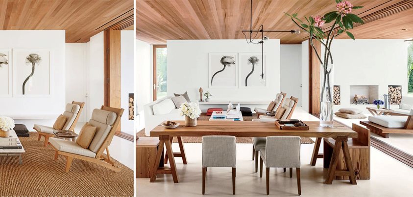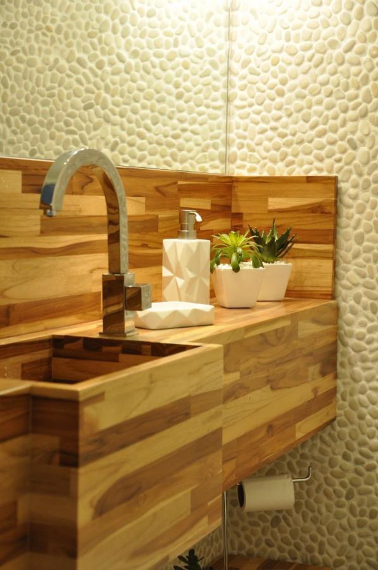 A madeira cai bem com tudo! Combina com vidro, pintura, pedra, inox, laca, laminados, aço escovado, etc. Como proporciona muitas possibilidades, é um material muito apreciado pelos profissionais que atuam com decoração.
