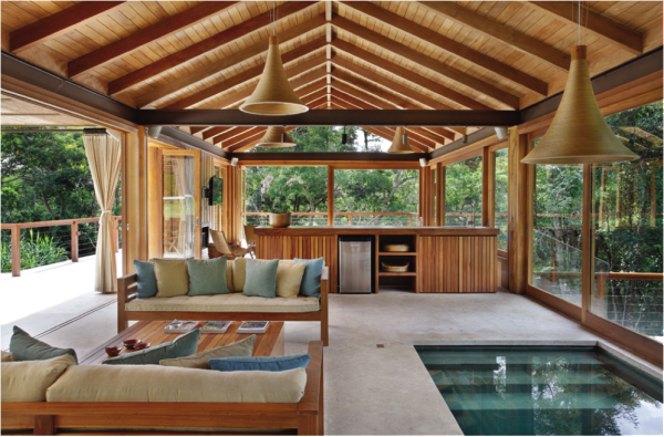 Se a opção for usar mais de um tipo de madeira em um ambiente, um cuidado a ser tomado é com a combinação das tonalidades. Outro ponto importante é trabalhar bem a madeira com os demais materiais, afinal tudo em excesso sufoca.