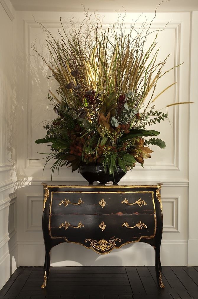 E não se pode esquecer os cristais, as porcelanas, as pratarias, o latão, os livros, os bustos, os candelabros, os lustres, os espelhos e as molduras ornamentadas e os arranjos florais.