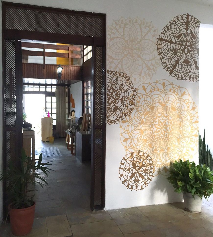 Como cada vez mais nossa casa é o nosso refúgio, é fácil encontrar alguma mandala na decoração dos lares, seja em quadros seja em adesivos, papéis de parede, como vitrais, enfim… São lindas e embelezam os espaços.